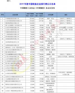 “2019年度中國輪胎企業(yè)排行榜”“2019年度中國境內輪胎企業(yè)排行榜”Z終名單,將在《中國橡膠》雜志社于8月21~23日在寧夏銀川召開的“橡膠工業(yè)綠色化數字化高質量創(chuàng)新發(fā)展高峰論壇暨2019年度中國輪胎企業(yè)排名發(fā)布會”上正式發(fā)布,同期還將發(fā)布“2019年度輪胎企業(yè)專利排行榜”。